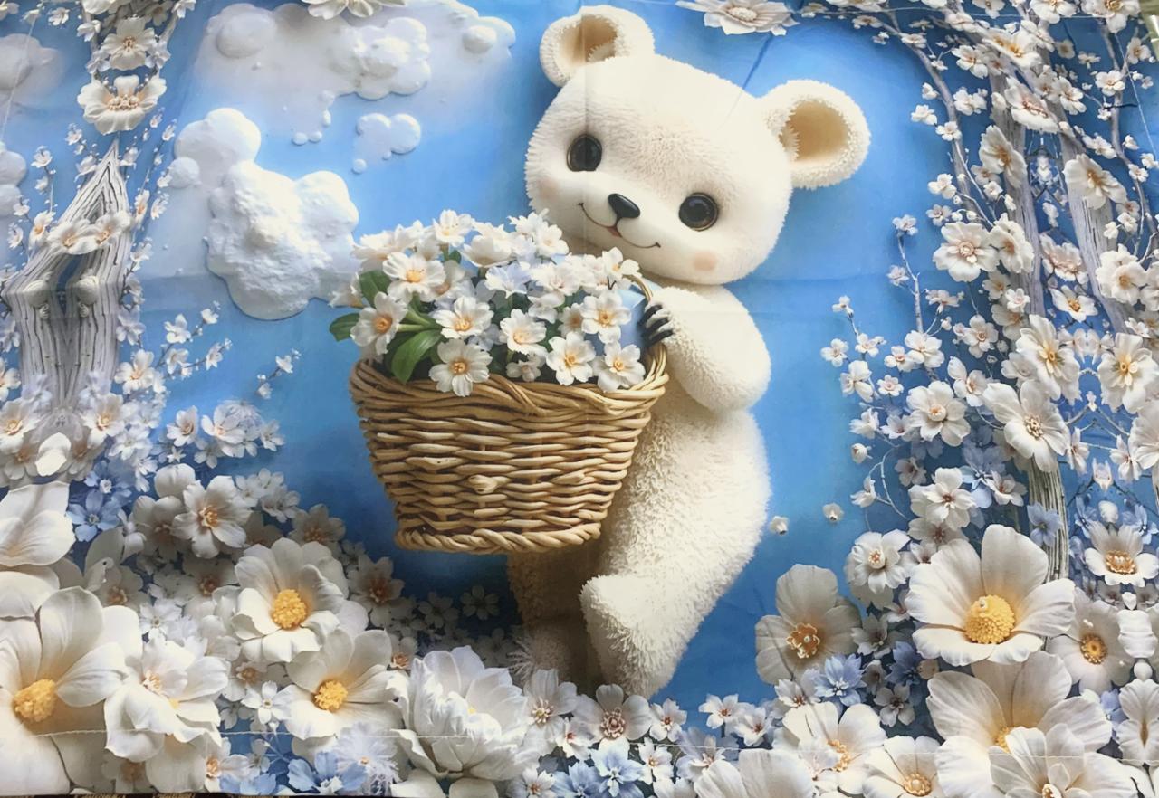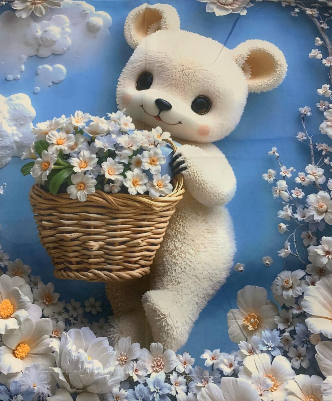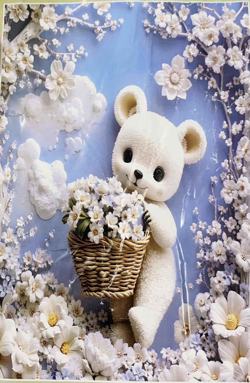 Transform your bedroom with this charming 7D printed king size bedsheet set, featuring an adorable 3D Cartoon Bear with Daisy Flowers Print surrounded by soft pastel flowers and lush green leaves. The high-definition 7D print gives a realistic, embossed look that adds depth and elegance to your bedding. Material: Premium quality soft fabric for ultimate comfort Print Type: 7D High-Definition Digital Print Design: Cute turquoise dinosaur with floral and leaf detailing Finish: Smooth texture with long-lasting color vibrancy Set Includes: 1 King Size Bedsheet (108 x 108 inches) & 2 Matching Pillow Covers.