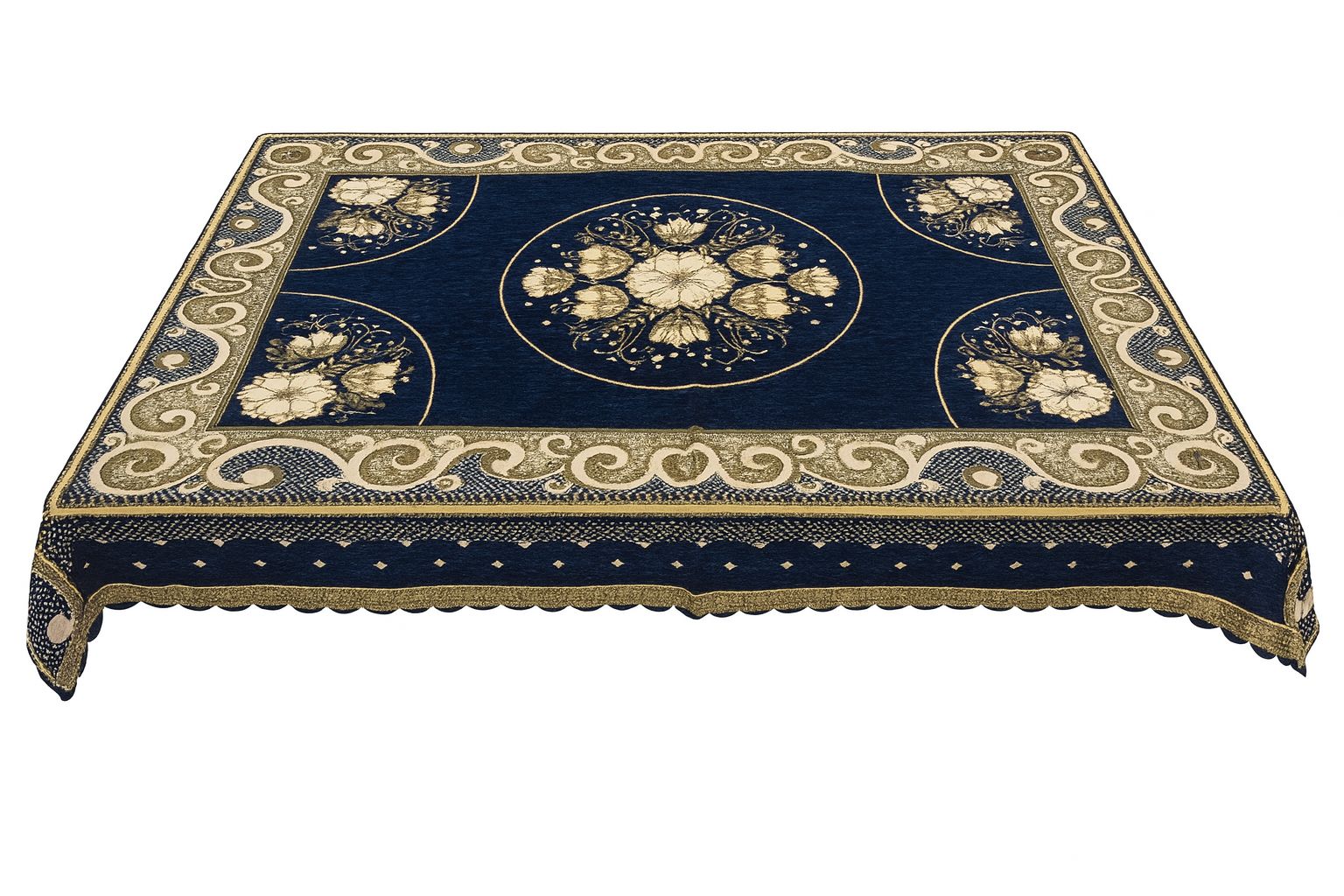 Comfort Shoppy Velvet 6 Seater Embroidered Table Cover (Navy Blue, Golden)