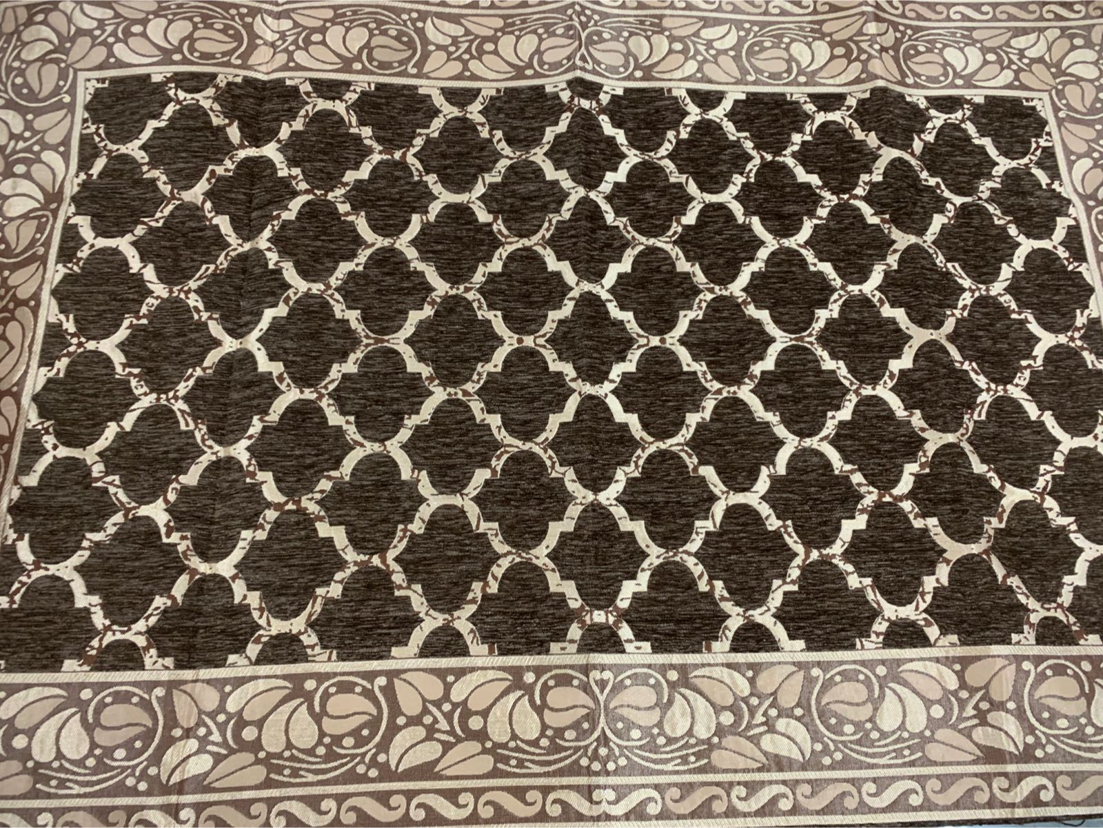 Comfort Shoppy Velvet 6 Seater Geometric Table Cover (Brown, Golden)