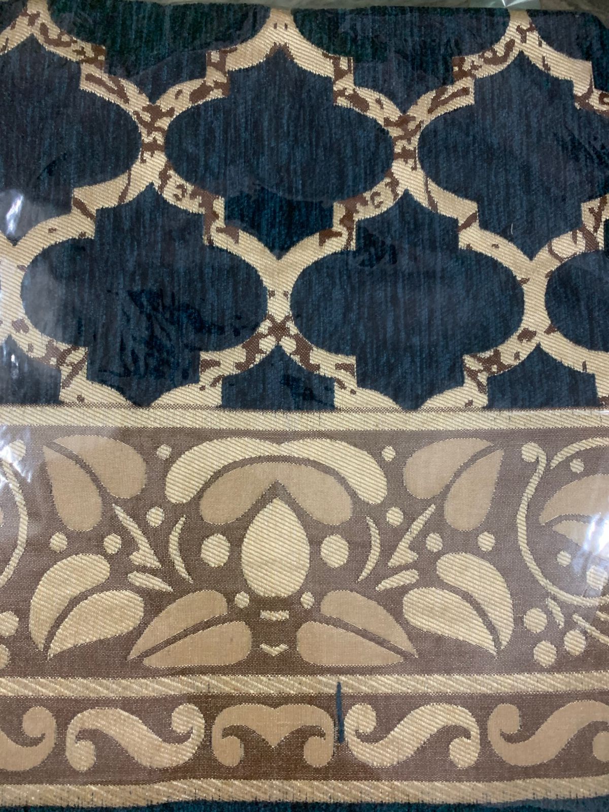 Comfort Shoppy Velvet 6 Seater Geometric Table Cover (Golden, Blue)